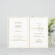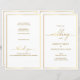 Este programa de casamento elegante e dobrável apresenta uma fronteira falsa de ouro que irá ajustado com muitos temas de casamento. Projetado para ser impresso em ambos os lados e fornecido plano para você dobrar, o cobrir mostra o local enquanto o dentro pode ser editado com a ordem de serviço e festa de casamento. Este design moderno com bordas de ouro é adequado para um serviço religioso de memorial religioso ou uma cerimônia humanista. O efeito folha de ouro FAUX é impresso e NÃO é metálico.
