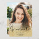 Um moderno, simples brilho do ouro-chic acende o formando de script ombre com 4 fotos de lançamento de graduação. Adicione sua mensagem no verso.