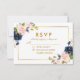 Cartão RSVP de Casamento Dourado Azul Cor Floral Cor-de-rosa Azul