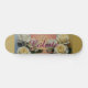 Este skate apresenta uma foto digital de seis rosas brancas com pétalas listradas azuis sobre um fundo gradiente. O skate tem um skate de qualidade profissional feito a partir dos melhores ingredientes. O skate é feito com sete pratas premium da USA Maple. O convés é de 7,8 polegadas. As rosas são dispostas de forma simétrica, com três rosas do lado esquerdo e dois do lado direito. O fundo apresenta um gradiente macio, de cor rosa-coral no topo ao ouro, com um padrão decorativo de pequenas esferas metálicas no centro. A imagem tem uma qualidade antiga, pintada. O nome Colette está no roteiro de vinho centrado no skate. Você pode substituir o nome clicando no botão Personalizar