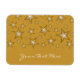 Design moderno com ouro "brilhante" e estrelas brancas sobre fundo amarelo escuro. Imã de geladeira com um design personalizável para você personalizar com seu próprio texto, imagens e ideias. Note que esta é uma imagem impressa criada usando fotografias originais e técnicas digitais, que ela não brilha ou contém faíscas reais.
