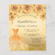 Um convite moderno, na moda e glamouroso para um Chá de panela. Um fundo de ouro falso com pó de ouro falso, um vestido e rosas, florais. O nome é escrito com um moderno estilo escrito à mão. Personalize e adicione os detalhes da sua festa.