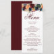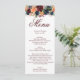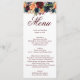Este cardápio é perfeito para deixar seus convidados saberem o que é para jantar ou almoçar. Dourado, burgundy wine marsala red, flores azuis marinhos rosas florais decoram este adorável menu de casamento.