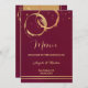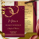 Um cartão de modelo de cardápio elegante ou de casamento de vinhas (ou janto de Ação de Graças), com ouro e ouro rosa, que intersetam manchas e faíscas de anéis de vinho num fundo de marsala de burgata. Também é bonito para um restaurante para ser usado em ocasiões especiais.
