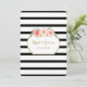 Cartões de modelo personalizados de convite de casamento em um padrão clássico de listras preto e branco com detalhes dourados, flores de safra rustica cor-de-rosa e pêssego e texto de vintagem em estilo manuscrito. Personalize estes convites com os detalhes do seu casamento. Disponível em produtos correspondentes para todas as suas necessidades de casamento.