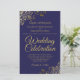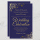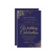 Estes belos convites para casamento são fazeres baratos e econômicos, a escolha perfeita para aula, estilo e beleza num orçamento. O design apresenta um fundo azul marinho com caracóis e espirais nos cantos de folhas invertidas do ouro ornamentado. A tipografia inclui a inscrição em rico para um estilo simples e elegante. Uma maneira maravilhosa de convidar seus amigos e família para compartilhar sua alegria em seu dia especial sem quebrar o banco.