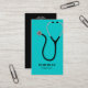 Doutor customizável do cartão de visita da medicina com ilustração do estetoscópio na parte dianteira e no símbolo do caduceus.
