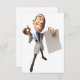 Esta design é uma médica segurando papel. O médico tem um sorriso engraçado no rosto e está prestes a escrever no jornal. Este médico que segura algum design de papel parece excelente neste Convite
