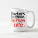 Esta caneca lê: "Doutores Diagnóstico. Cura das enfermeiras." Este copo de café faz um grande presente para uma enfermeira ou um estudante dos cuidados!