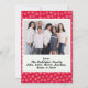 Compartilhe a mensagem da Paz na Terra quando enviar estes doces cartões de Natal vermelho e branco, com floco de neve e frutas. Um fundo vermelho brilhante e alegre complementa um padrão bonito de floco de neve. Uma linda pomba segura bagas na boca enquanto ela voa. Texto fácil de ler diz "Paz na Terra" em letras negras. Personalize as costas com uma foto de sua escolha e assine seus nomes na parte inferior para um envio super fácil.