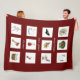 Cada quadrado individual deste cobertor vermelho do padrão de grade contém uma representação colorida em aquarela de cada um dos doze dias de Natal com a frase "meu verdadeiro amor me deu" em branco intercalado entre as imagens. Da minha imagem original criada digitalmente.