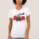 Esta design é uma dracula e um morcego. Drácula tem sua capa aberta e há um morcego voando por aí. Esta drácula e design de morcego parece excelente nesta Camiseta das Mulheres