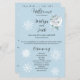 Um pequeno dragão branco senta-se entre rosas brancas contra um fundo azul-claro suave com flocos de neve delicados.