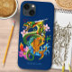 Dragão chinês verde com peixes koi ornados com flores de lótus e flores de cereja contra um pano de fundo azul escuro