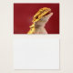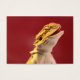 Um dragão barbudo virado para cima e parecendo feliz e alegre.