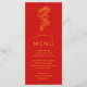 Um menu de comida vívido e único estilo Dragon e Phoenix adaptado ao seu evento com um tema semelhante. Funciona para vários eventos, seja janto de ensaio, janto de recepção ou festa de noivado. Embaixo do dragão no centro há pontos para as informações do menu de eventos.