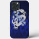 Um dragão se aplica em cromo como prata em uma corrida azul chama impressão de fundo de fibra de carbono para vestir ou compartilhar em todas as ocasiões festivas. Uma ideia de presente de excelente!