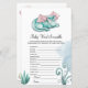 Jogo de Chá de fraldas do Bebê Dragão Turquesa. Este belo cartão de jogo é excelente para chás de fraldas com um tema de dragão. Apresenta um pequeno dragão branco, de cor lacrimogênea, com asas cor-de-rosa sobre uma planta, cercado por elementos naturais como plantas em cores pastéis de verde. Para alterar textos, reorganizá-los e formatar seu estilo e posicionamento, basta clicar no botão personalizá-lo. Itens correspondentes disponíveis no repositório. c) KaliValy