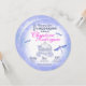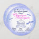 Convide seus convidados de Quinceañera com uma carruagem azul e prateada cercada por libélulas de cristal azul. A textura azul de aquarela com carruagem brilhante ficará bonita com placas rsvp, etiquetas e presentes correspondentes. Transfira facilmente esta design de libélula azul mágica para outras placas e presentes.