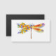 Pintura artificial, libélula floral em laranja e roxo contrastantes com papoila amarela, brilhante e florescente da Califórnia e flores silvestres azuis em fundo branco.