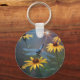 Esta chaveiro apresenta uma libélula azul que repousa sobre uma Susan de olhos negros.