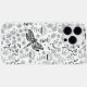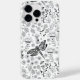 Dragonfly e várias flores e folhas. Padrão do vetor de porta em preto e branco.