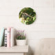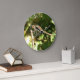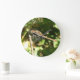 Este relógio maravilhoso apresenta uma fotografia de uma bela libélula mais escura (Sympetrum striolatum). Esta espécie é principalmente marrom com manchas vermelhas em seu corpo e lindos olhos castanhos. A libélula está sentada sobre um galho com suas asas esticadas para a frente, revelando sua intrincada beleza. A fotografia foi tirada usando macrofotografia para um resultado incrivelmente detalhado.