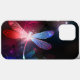 Luminosa, voadora, libélula vermelha, com asas transparentes e detalhadas sobre fundo escuro, noturno, luminoso com plantas tropicais e vagalumes. libélula vermelha.