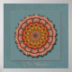 Um abstrato, design de mandala criado das cores e padrões nas asas de uma Dragonfly Pennant em tons de pêssego, rosa, ouro e turquesa. No centro, um pequeno símbolo Om, que são tradições budistas, simboliza frequentemente a vibração essencial do universo. "Om Shanti" é geralmente traduzido como "Que possa haver paz".