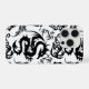 The image showcases a bold monochrome dragon pattern set against a deep black background. Four stylized tribal dragons are positioned in a circular arrangement, each rendered in dark gray with sharp curves, sweeping tails, and intricate flame-like details. The symmetrical layout creates a balanced, emblem-like composition with strong negative space in the center. The dragons feature fierce profiles, curved horns, and flowing ornamental lines, giving the design a powerful, mythical, and slightly gothic aesthetic. This striking dragon motif is ideal for apparel graphics, tattoo inspiration, gaming artwork, branding elements, or decorative surface design.