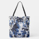 Dramatic Blue Deco Cat Large Shoulder Tote