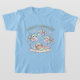 An adorable kids t-shirt featuring cute penguins flying through the night sky, delivering sweet dreams to a sleeping child on a cloud.
