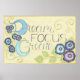Quer seja um mantra para o espírito criativo ou um aviso sussurrado da sua musa interior, estas palavras carregares a intenção de inspirar. Flores azuis e roxas brilhantes com espuma giratória enquadram este convite para despertar a atividade criativa. Design com traços de mão inteira e com alface. Texto: Cor do "Crio de Foco do Sonho": Vívido
