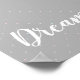 Poster com padrão de pontos cor-de-rosa e azul pastel em fundo de cinza.
