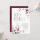 Arranjos delicados, folhagem com pequenos sotaques florais em tons suaves e sonhosos de creme, esticados e rosa com salpicos de burgundy e layouts únicos de design, fazem desta coleção uma emocionante, especialmente para casamentos de outono. O convite de casamento mostrado aqui mostra bordas de folhagem exuberantes na face frontal e uma textura de entorpecimento e cor d'água nas costas. Veja o link de coleção nesta página para ver todos os itens correspondentes neste belo design ou ID817 de pesquisa para ver outras peças e opções de cor para este conjunto.