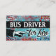 Cartões de visitas de motoristas de barramento coloridos em turquesa, aqua, vermelho, amarelo. Driver de barramento para contratar cartões de visitas.