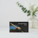 Um baterista repousa as mãos num tambor de névoa enquanto segura um par de pauzinhos. O fundo consiste em uma intermitência de gradiente azul atrás do tambor snare enquanto seu nome aparece no canto superior direito em branco brilhante sobre um fundo preto de jato. Este é o cartão de visita perfeito para bateristas, percussionistas, músicos ou qualquer pessoa envolvida na indústria musical.