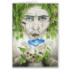 Pintura aquosa de uma dríade de pássaro com olhos intensos segurando uma glória matinal