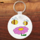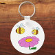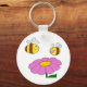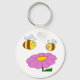 Um design bonito de duas abelhas pairando sobre uma flor rosa. Esta é uma design maravilhosa que certamente trará um sorriso à sua cara. Perfeito para uma grande variedade de produtos, você se apaixonará por ela. Estas duas abelhas e uma flor parecem excelentes nesta chaveiro. Perfeito para si mesmo ou como presente