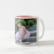 Caneca de café com bailarina de cor-de-rosa e duas canecas tontas de cor branca/rosa.