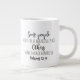 Jumbo Alguns dias, uma xícara de joe de tamanho normal simplesmente não vai funcionar. Quando precisar de uma dose extra de cafeína, pegue a sua caneca de café extragrande de Zazzle. Vai acomodar um cheio de 20 onças de Venti. Perfeito para sopa, cereal, sorvete ou chili também! Esta caneca gigante apresenta uma alça em forma de C para um corte confortável. Dimensões: Altura: 4,5" Diâmetro: 3,9" Capacidade: 20 onças de micro-ondas e lava-louças Forte, de cerâmica Cumprir ou exceder os requisitos do FDA para o Designer de Segurança de comidas e bebidas Dica: Para garantir o impressão de alta qualidade, note que a área de design personalizável deste produto mede 4" alto x 10,5" de largura