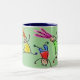 Sage e duas caneca azul com design de desenho animado para crianças divertidas.