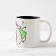 Uma caneca branca e preta com design de desenho animado para crianças divertidas.