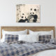 Com uma tinta preta de solteiro, o pintor retrata os pandas por um intervalo de cheios. O bambu é pintado alto e hetero, com folhas balançando e cantando ao vento. Chubby e fofo, dois pandas gigantes aqui são esboçados por cor pálida. Adicionados com tinta escura nos olhos, ouvidos e pernas, os sujeitos se caracterizam como apimentados e adoráveis. A Twoness sempre tem um significado propício na cultura chinesa; um par de pandas gordinhas significa mais reunções, harmonia e felicidade. Plantas também têm bom significado, como bambu sugerindo integridade. Representando com esses dois objetos afortunados, essa imagem é cheio de desejos auspiciosos.