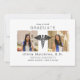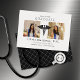 Estes anúncios profissionais de formando de 7" x 5" apresentam uma insígnia médica negra (Caduceus Rod of Asclepius) no centro, com marcadores para duas das suas fotos favoritas, num fundo branco, com letras pretas.