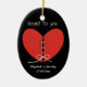 Duas metades de coração amarradas com um ornamento personalizado de fita.