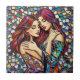 Azulejo LGBT. Duas belas mulheres se abraçando no amor. Azulejos de mosaicos brilhantes e coloridos, ilustração de arte ai.