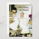 Duas noivas que Wedding o convite com duas noivas. Noivas que montam uma bicicleta. Se está vestindo um chapéu e um está guardarando flores. Tem uma apelação do vintage.