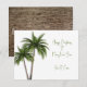 Palmeiras saudando cartão plano de Natal. Branco com palmeiras tropicais design, este cartão contém fontes modernas para sua escolha de saudação e assinatura. Inverso contém um latido de palma/imagem de tronco. Um design minimalista, perfeito para quem quer que seja que o envie de um clima quente no feriado, ou por qualquer razão. Mostrado em tamanho menor, que pode ser mudado facilmente, mas nem todos os tamanhos funcionarão para este design.