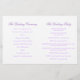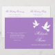 Duas pombas brancas de dois lados com duas fitas roxas para o casamento. Parte do conjunto de papéis de carta de pomba branca. Bonito tom púrpura e branco pastel. Edite este programa de casamento com seu próprio nome, datas, texto da cerimônia, assistentes de festa de casamento e obrigados. Um programa simples, mas elegante, simplesmente substitua o texto de amostra pelos detalhes de suas informações de casamento e dobre programas ao meio na entrega. Design exclusivo de Sarah Trett.